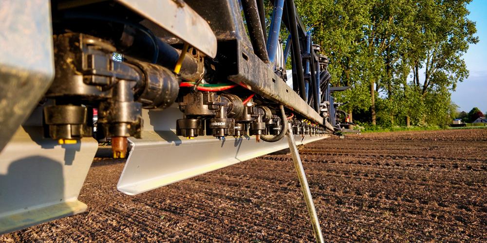 Standaard is de Leeb LT voorzien van twee boomhoogtesensoren aan elke buitenzijde van de boom, BoomControl Eco heet dit. Het gros van de klanten kiest voor twee extra sensoren op 37,5 of 75 cm daarvan zodat in aardappelen op en tussen de ruggen gemeten kan worden. Als je onder de spuitboom kijkt, zie je opnieuw een bijzonder aanpak. Allereerst is de keuze aan dophouders talrijk, van enkelvoudige tot viervoudige. Het meest uitgebreid is de 4-2 optie met ruimte voor in totaal zes doppen. Elke dop heeft zijn eigen kleur luchtleiding en diezelfde kleur zie je ook op de terminal in de cabine.