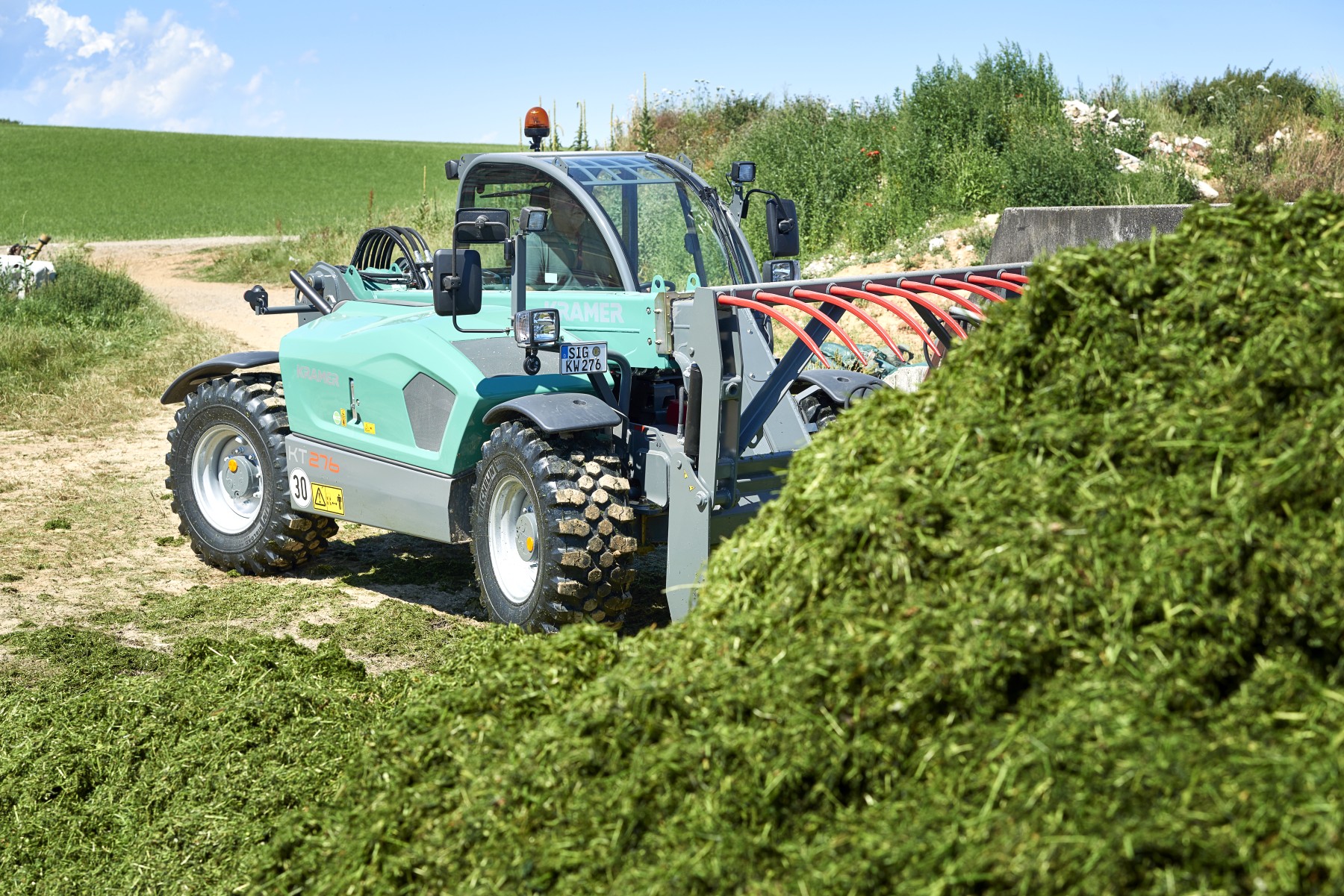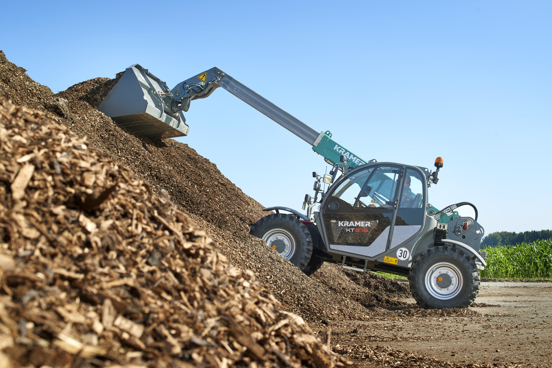 Het Duitse Kramer heeft haar wortels in de landbouw en bouwt al heel lang wielladers en verreikers. Door de alliantie met John Deere zien we deze nu weer in de typische groene Kramer kleur terug in de landbouw.